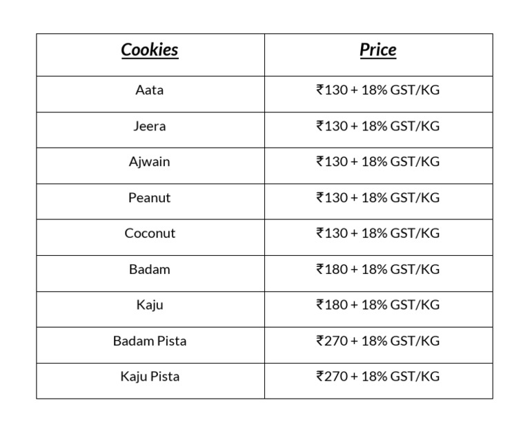 Biscuit Price List PDF
